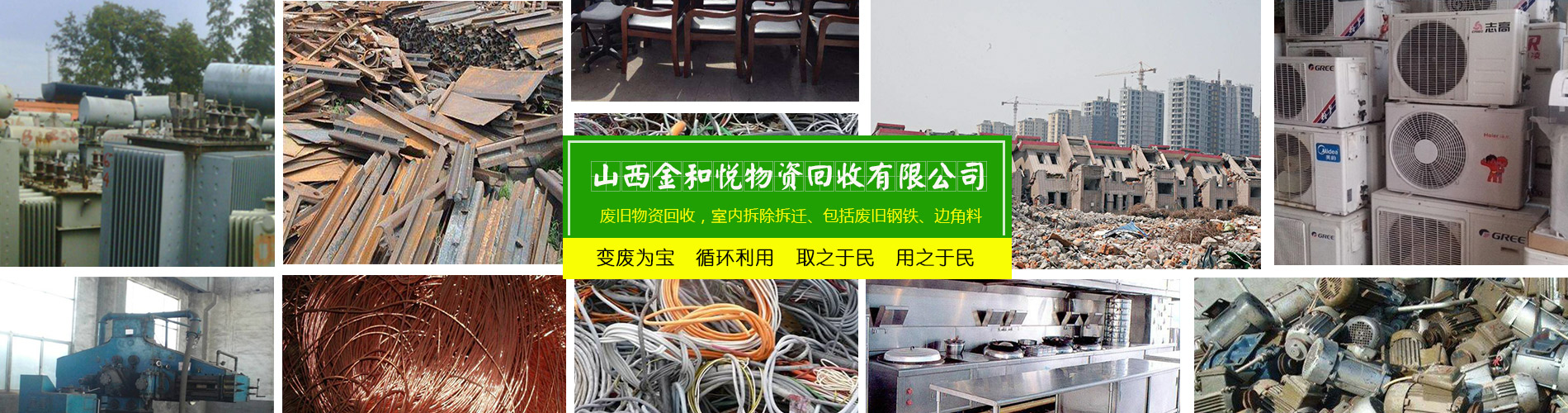 山西金和悅物資回收有限公司是一家從事廢舊物資回收,整廠設(shè)備打包回收的公司。主要可回收社會(huì)各行各業(yè)的廢舊物資,包括廢鋼廢鐵/廢銅廢鋁/稀有金屬/廢不銹鋼/廢舊機(jī)械設(shè)備/電線電纜/電池電瓶回收以及廢舊廠房整體設(shè)備打包回收。免費(fèi)上門(mén)估價(jià),現(xiàn)場(chǎng)付款,可帶工人上門(mén),清理庫(kù)房。我公司立足于環(huán)保,利用閑置的資源,變廢為寶,循環(huán)利用,取之于民,用之于民,讓有效的資源得到合理的利用,充分體現(xiàn)它的價(jià)值。公司堅(jiān)持“以質(zhì)量求生存,以信譽(yù)求發(fā)展”的基本原則,為山西及周邊地區(qū)的企業(yè)、單位和個(gè)人提供安全、快捷的服務(wù)。歡迎各界有廢料或需要拆除的人士來(lái)電洽談業(yè)務(wù)!